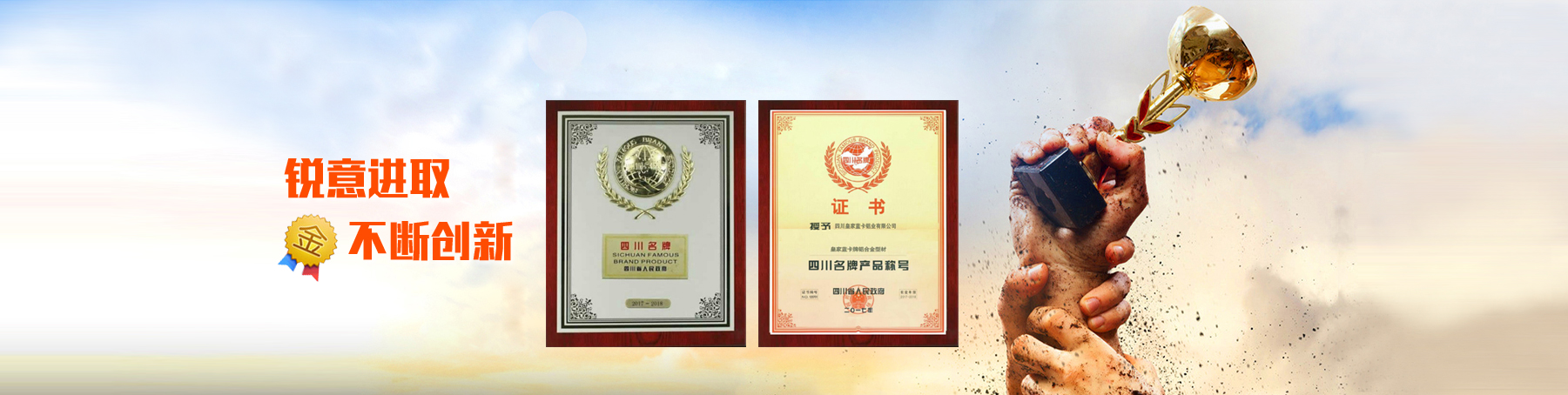 公司占地面積100畝,注冊商標(biāo)為“皇家藍(lán)卡”,曾獲“四川名牌產(chǎn)品稱號”、“高新技術(shù)企業(yè)證書”和四川省工程建設(shè)地方標(biāo)準(zhǔn)“參編單位”證書,年生產(chǎn)鋁合金型材能力 50000 噸